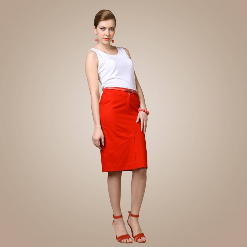 Юбка на подкладе с подкройным поясом. Застёжка-гульфик и шлица расположены в среднем шве полочки.