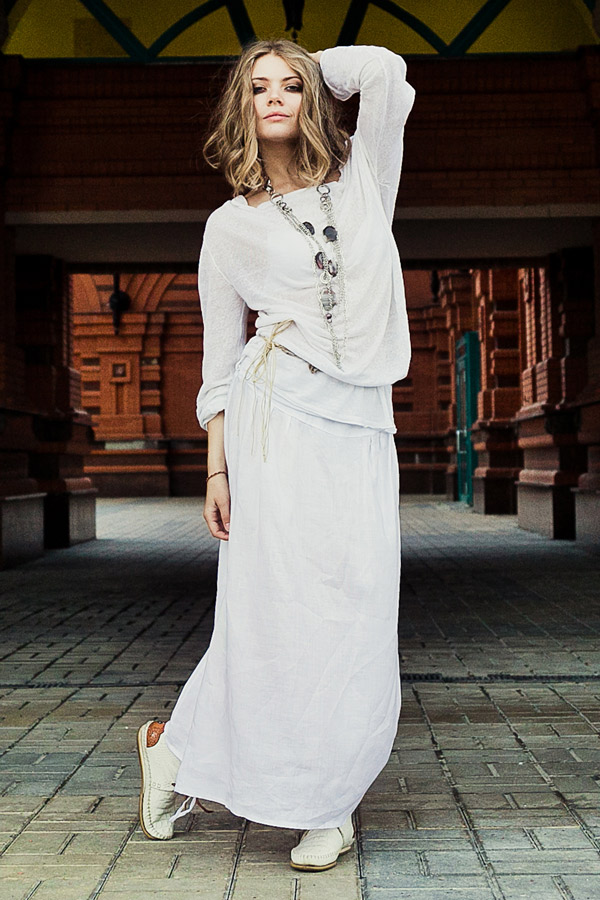 Юбка «Рами» выполнена из натурального экологичного материала рами, который обладает замечательными свойствами повышенной прочности, ткань близка по текстуре и тактильным ощущениям ко льну.