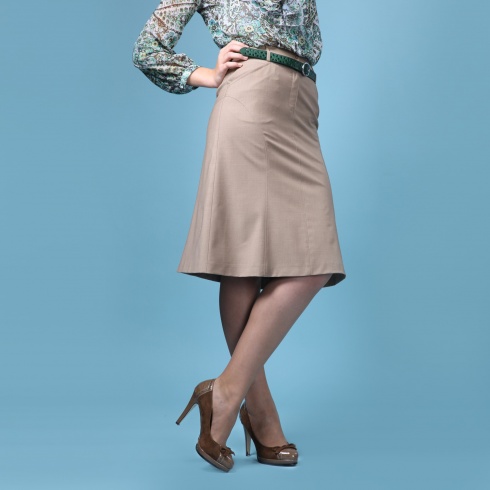 Юбка без подклада, А-силуэта. По линии талии заложены мягкие складки. По низу юбки - горизонтальный подрез.