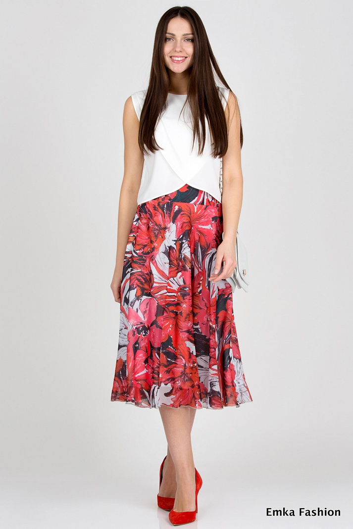 шифон+красно-оранжевые цветы на черно-белом фоне