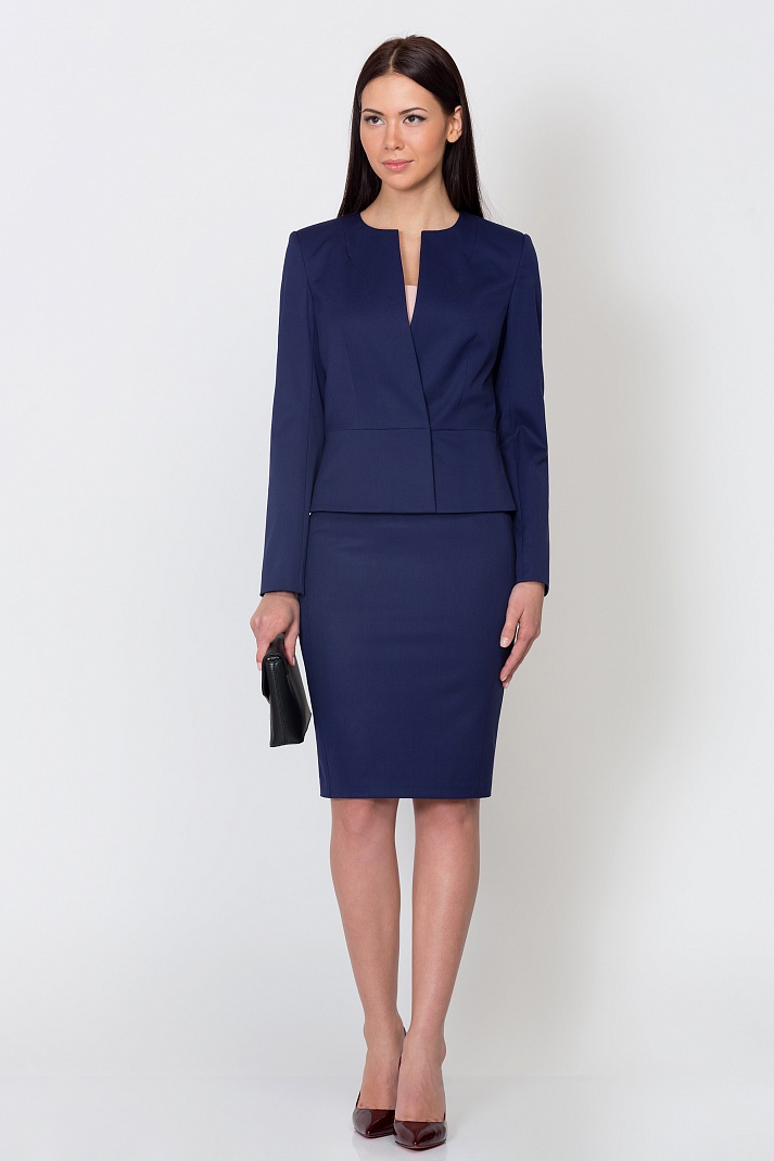 Жакет в деловом стиле, идеально подчеркивает линию талии. Сделан из ткани средней плотности, гладкой, очень приятной на ощупь. Темно-фиолетового цвета. Застегивается на двух кнопках. Жакет отлично подойдет для деловых переговоров, встреч и важных рабочих презентаций.