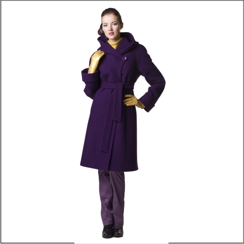 Удачное сочетание комфорта и элегантности, городской «casual». Мягкие, женственные, силуэтные линии, компактный объем, комфортная длина, уютный капюшон, актуальная ткань делают это пальто незаменимым для города. Высота застежки может варьироваться, делая капюшон маленьким, способным в любую погоду заменить головной убор, либо, наоборот, открывая шею и выкладываясь элегантной «шалью» по переду. Завершает образ пояс, мягко завязанный на талии.