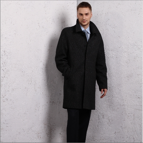Единственное в коллекции пальто с рукавом реглан, который вновь входит в моду. Два варинта ткани: однотонный велюр c отделкой из ткани в клетку и твидовая ткань, которая очень хорошо носиться и не выгорает на солнце, с отделкой нижнего воротника однотонным велюром. Воротник трансформируется в стойку, концы воротника застегиваются на петлю и пуговицу, что особенно важно в прохладные дни. Для мужчин, ценящих удобство и свободу движения.