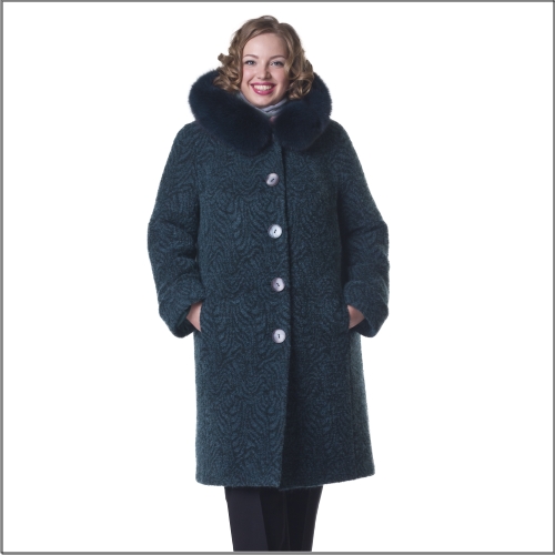 Удачное сочетание комфорта и элегантности. Особую выразительность и женственность модель обретает за счет ткани: мягкого букле с жаккардовым рисунком. При этом конструкция остается предельно простой. Наличие компактного капюшона с меховой отделкой для многих женщин становится обязательным элементом зимнего пальто, так как может заменить головной убор. В модели используются два вида утеплителя: шерстяной ватин и ветрозащитная ткань. Ватин хорошо сохраняет тепло, не накапливает статического электричества. Ветрозащитная ткань используется в качестве дополнительного утеплителя к ватину. Заменяет второй слой ватина, за счет чего изделие становится значительно более легким, меньшим по объему и совершенно непродуваемым. Обеспечивает комфортную носку при температуре окружающей среды от -10 до -30 градусов