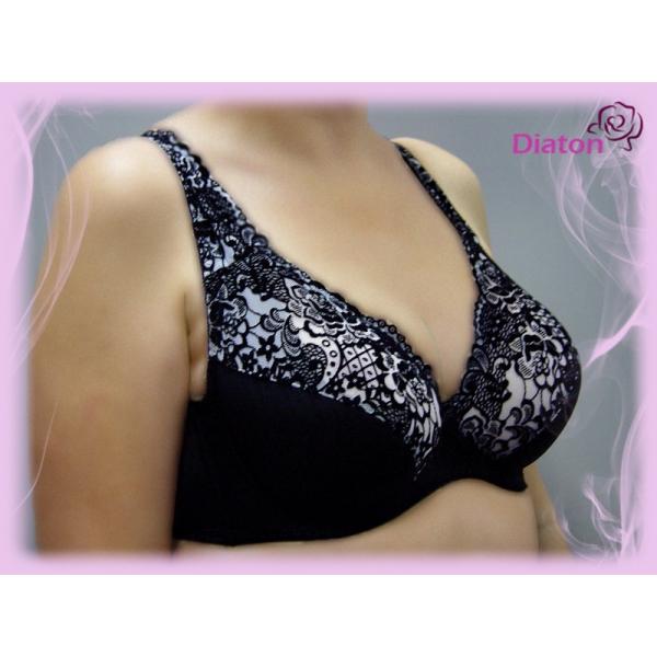 Боковая часть верха чашки и кружевная бретель усилена неэластичной сеткой. Нижняя деталь чашки выполнена из трикотажного полотна и х/б подкладки. Широкая боковая деталь создает комфортную поддержку.